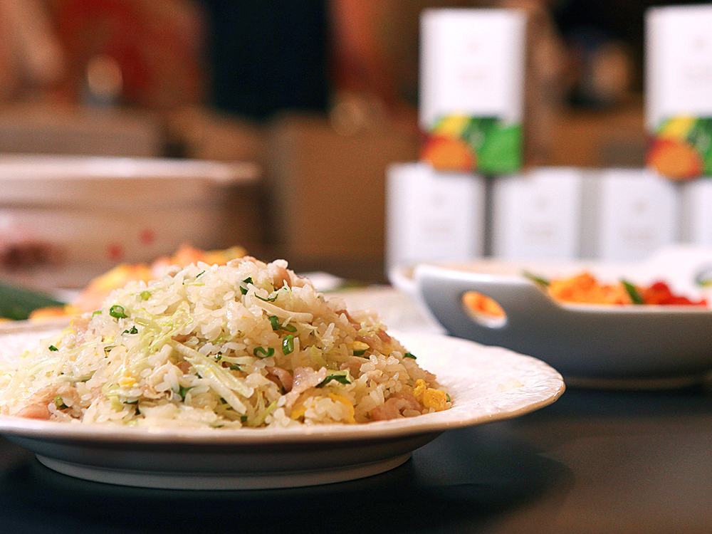 白飯 300g、肉絲 100g、高麗菜 55g、蔥 8g、香菇絲 28g、雞蛋1顆、圓山御廚無添加調味珍鮮 5g